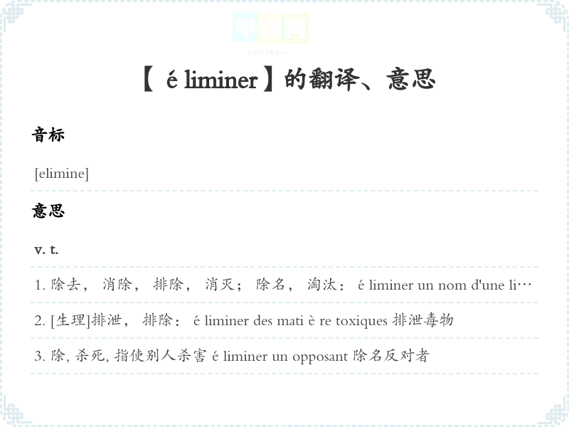 【éliminer】是什么意思、字义解释