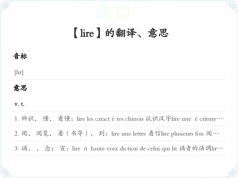 【lire】是什么意思、字义解释