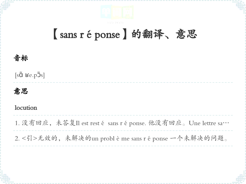 【sans réponse】是什么意思、字义解释