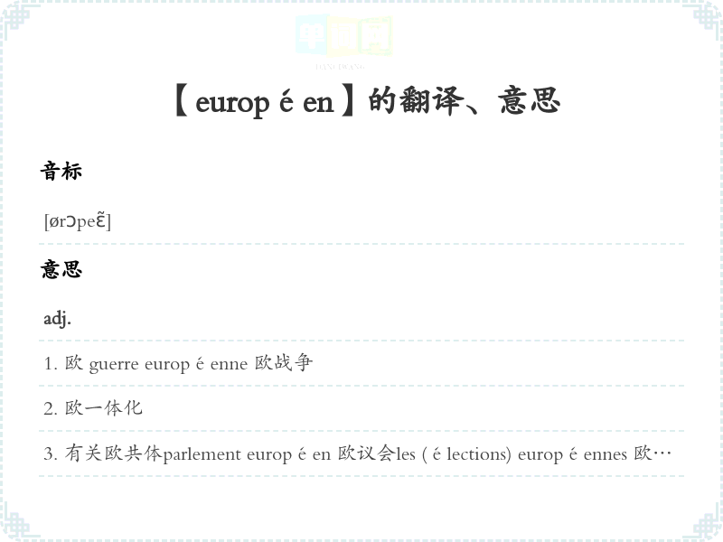 【européen】是什么意思、字义解释