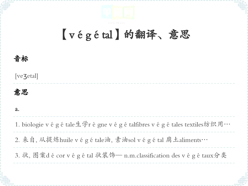 【végétal】是什么意思、字义解释