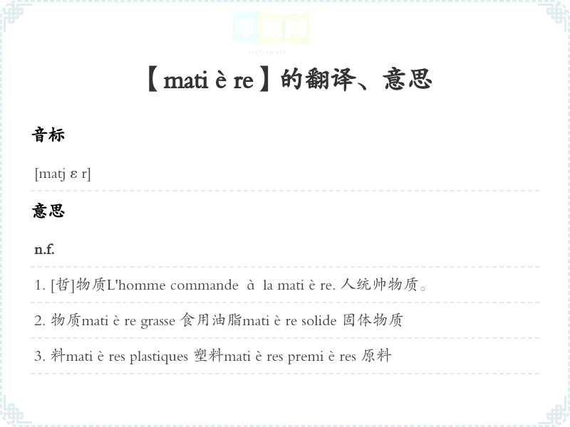 【matière】 词源:、 近义词:、 反义词: 联想词