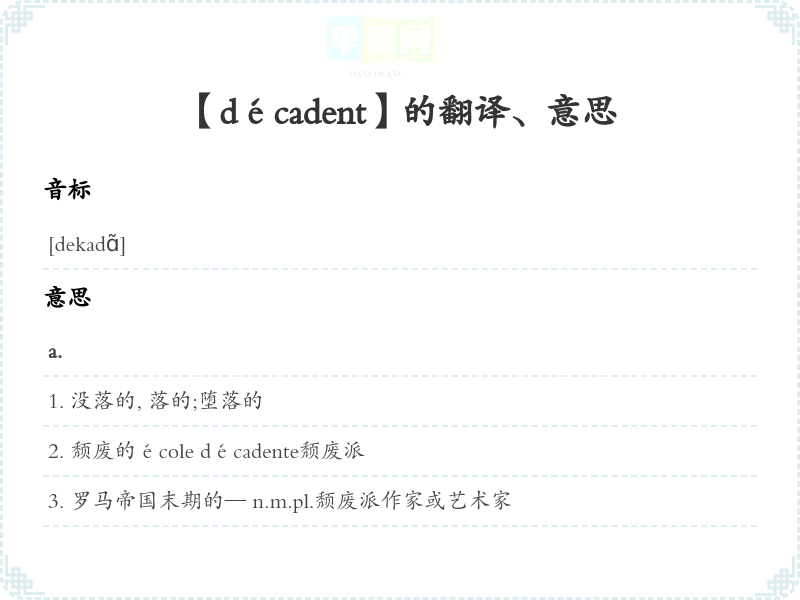 【décadent】是什么意思、字义解释