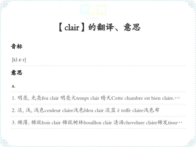 【clair】是什么意思、字义解释