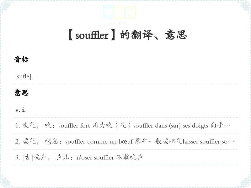 【souffler】 派生:、 联想、 近义词、 反义词、 同音、近音词 联想词