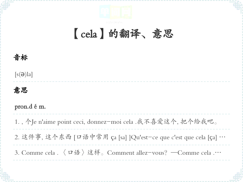 【cela】是什么意思、字义解释
