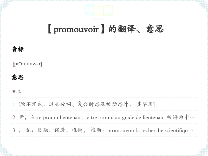 【promouvoir】是什么意思、字义解释