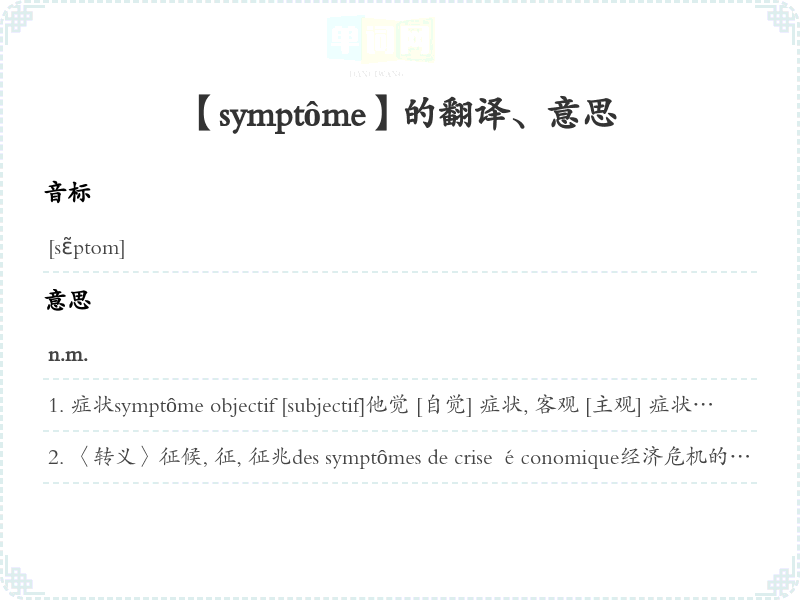 【symptôme】是什么意思、字义解释