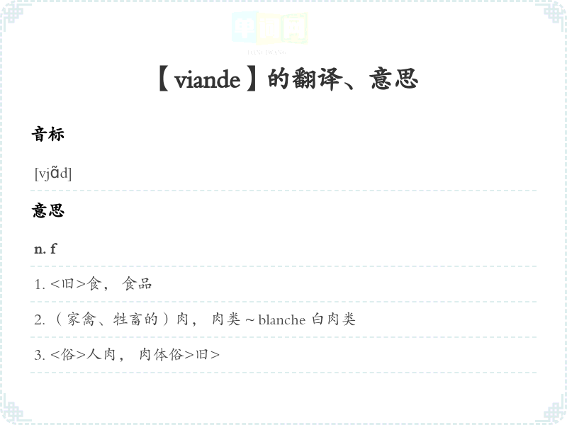 【viande】是什么意思、字义解释
