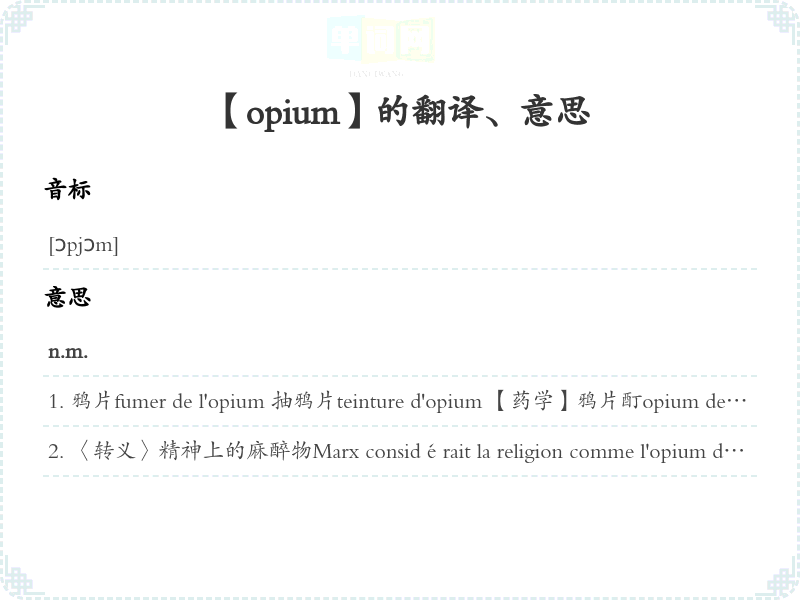 【opium】是什么意思、字义解释