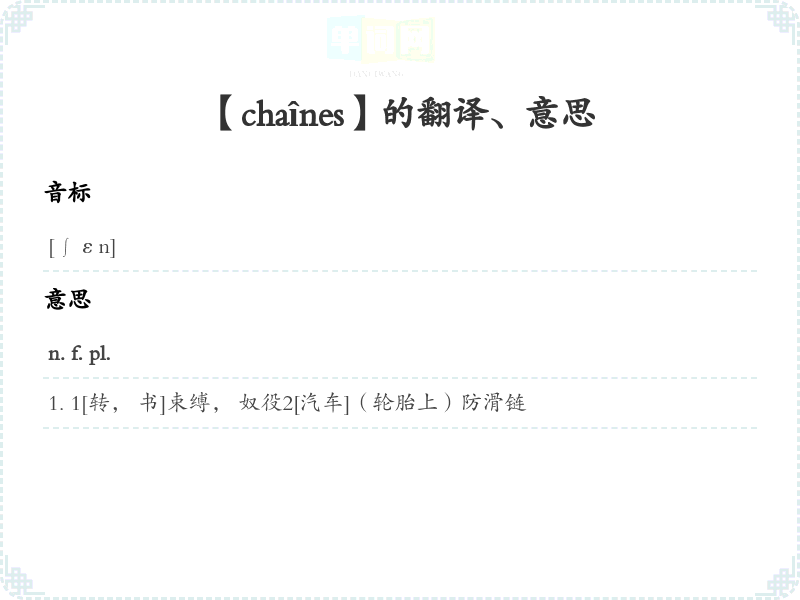 1[转, 书]束缚, 奴役2[汽车](轮胎上)防滑链