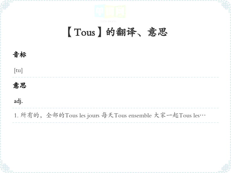 【Tous】是什么意思、字义解释