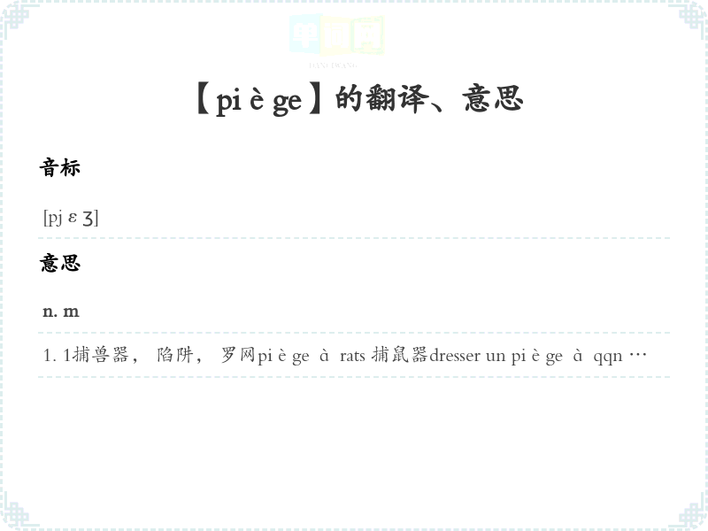 【piège】是什么意思、字义解释