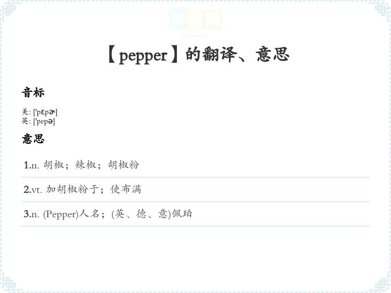 【pepper】是什么意思、字义解释