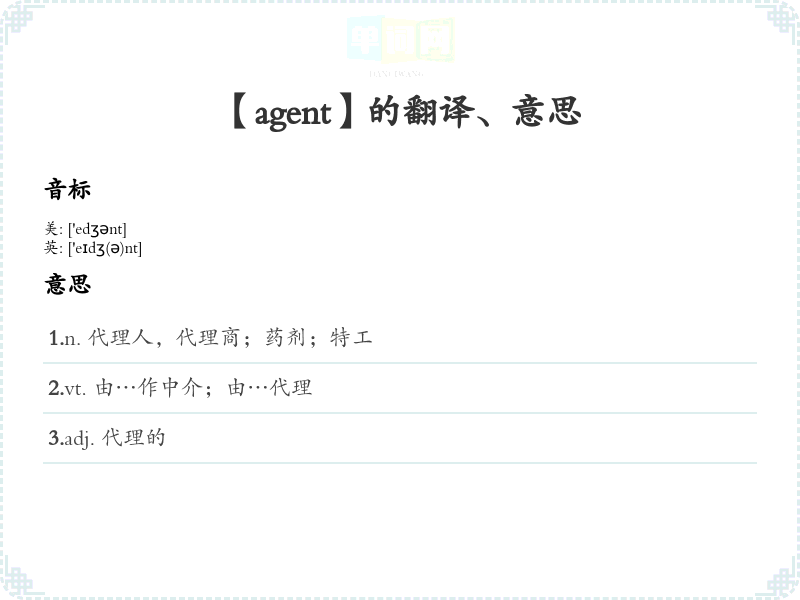 以上是关于“agent”这个单词的全面分析和学方法,希望对你的学有所帮助!