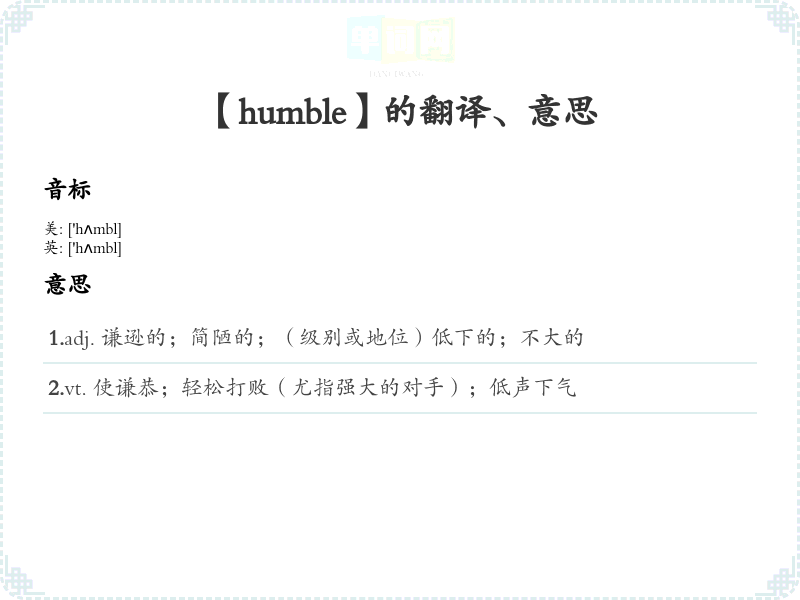 【humble】是什么意思、字义解释