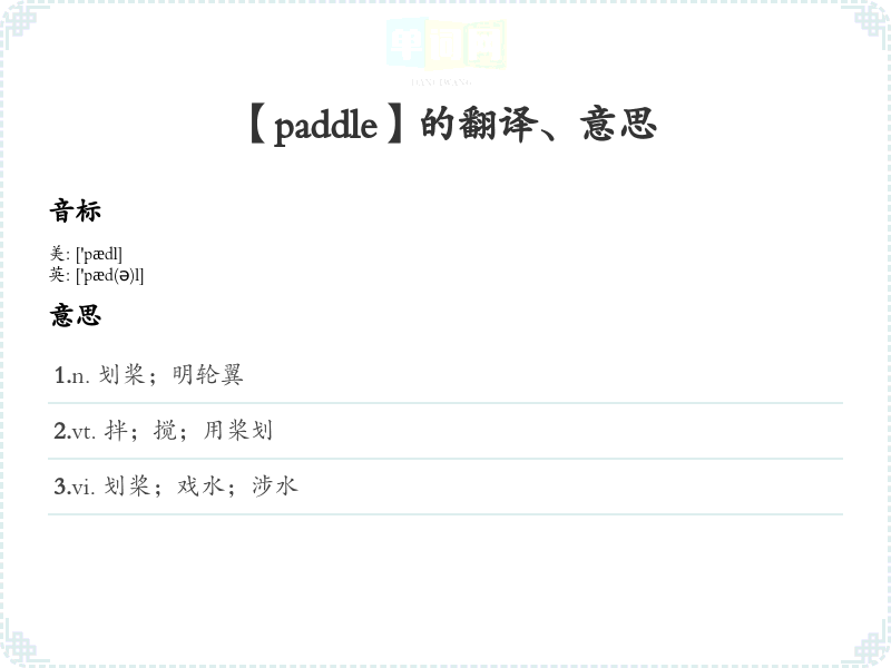 通过以上分析,可以更深入地理解“paddle”这个单词的含义和用法。