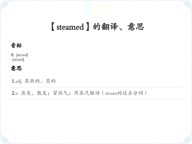 【steamed】是什么意思、字义解释