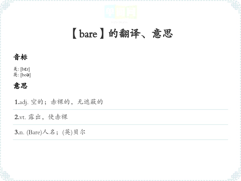 【bare】是什么意思、字义解释