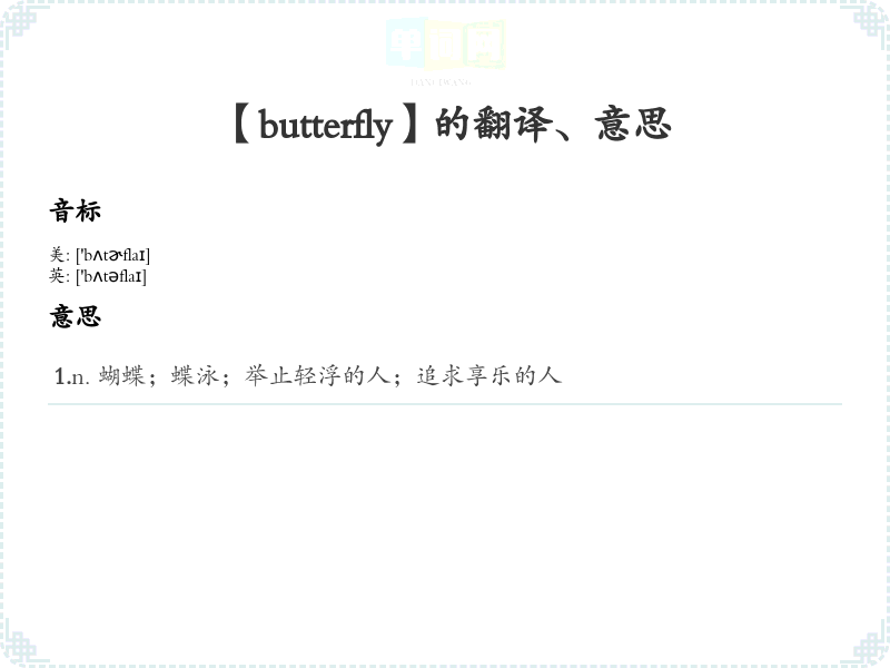 【butterfly】是什么意思、字义解释