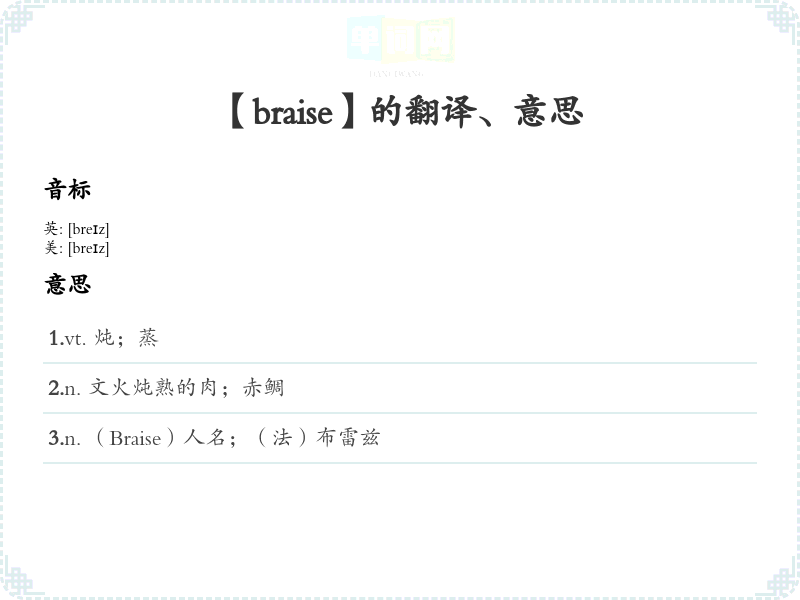 【braise】是什么意思、字义解释