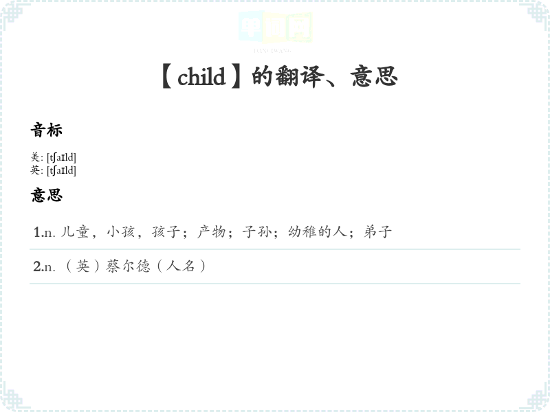【child】是什么意思、字义解释