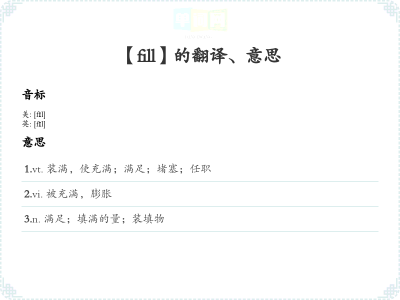 【fill】是什么意思、字义解释