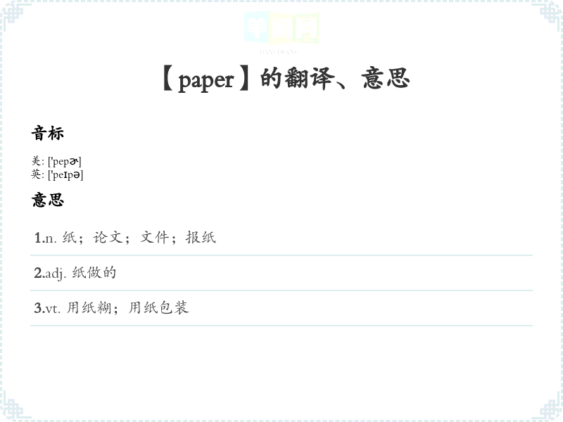 【paper】是什么意思、字义解释