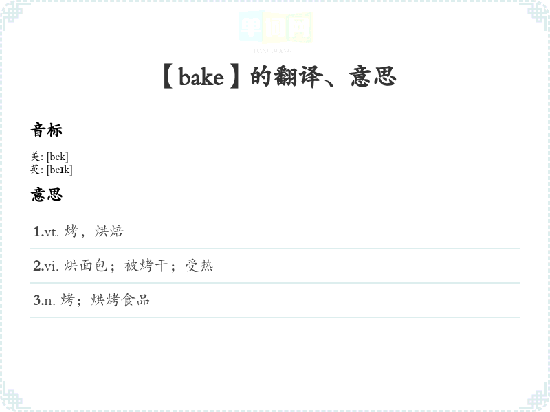 【bake】是什么意思、字义解释