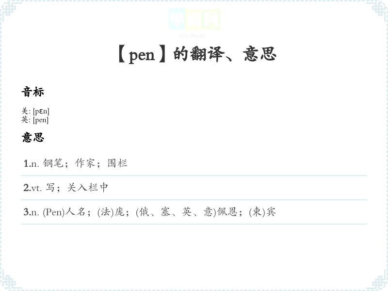 【pen】是什么意思、字义解释