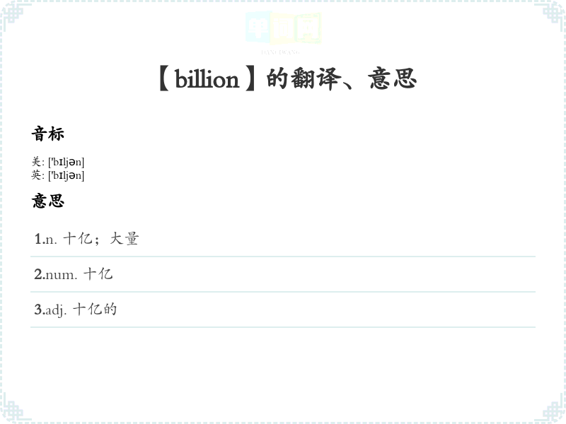 【billion】是什么意思、字义解释