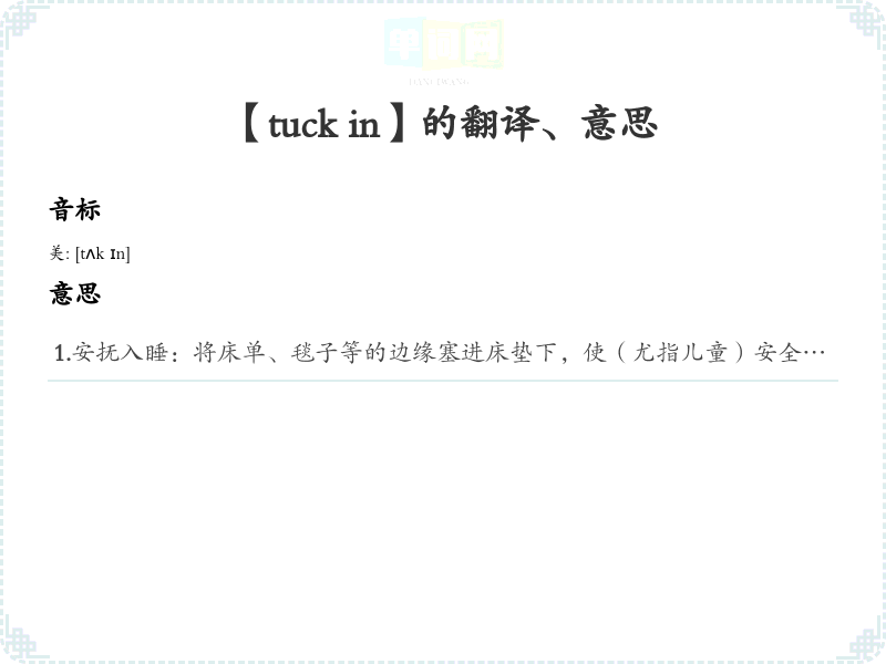 - [tʌk ɪn] 可以通过反复朗读以及在句子中使用帮助记忆。
