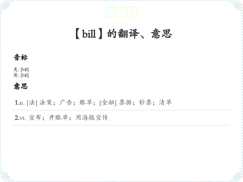 英文单词学*与分析:[bill]
