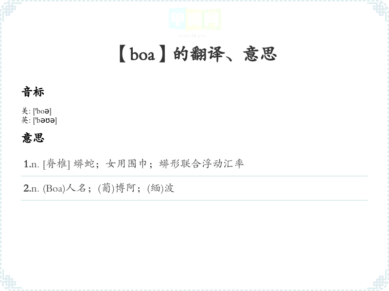 【boa】是什么意思、字义解释