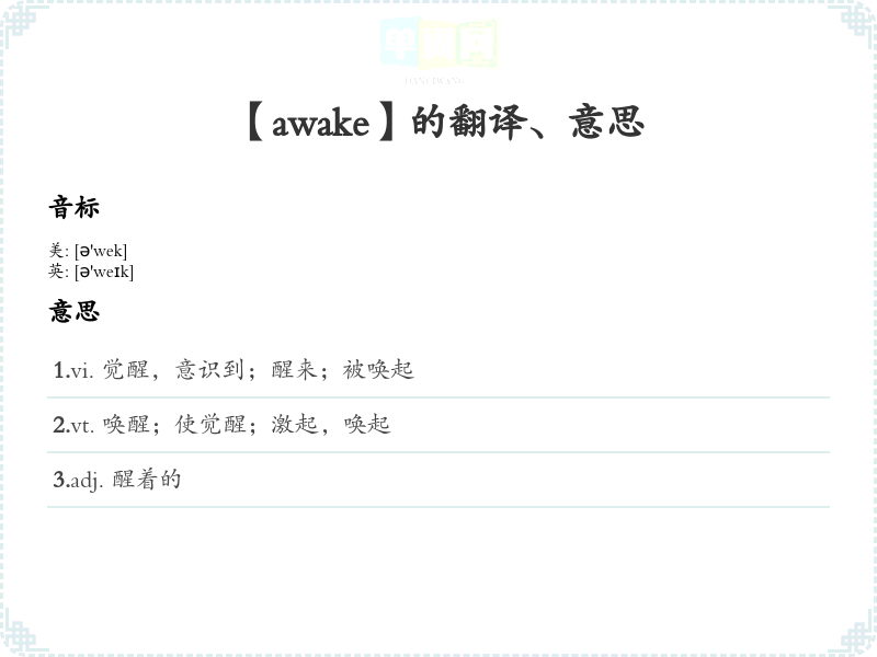 【awake】是什么意思、字义解释