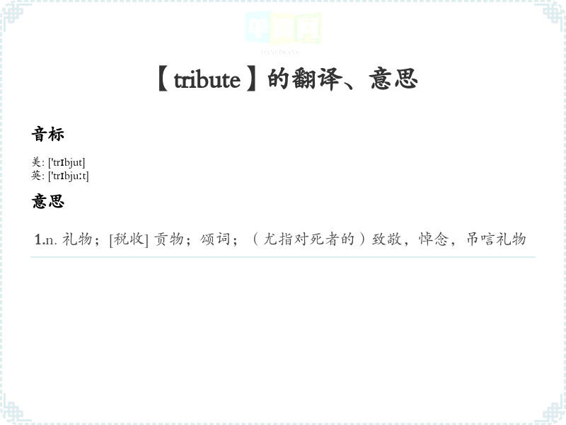 【tribute】是什么意思、字义解释
