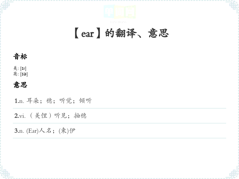 【ear】是什么意思、字义解释