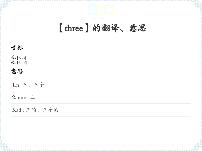 【three】是什么意思、字义解释