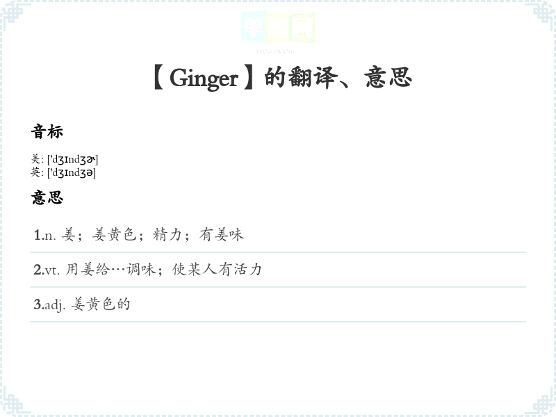 【Ginger】是什么意思、字义解释