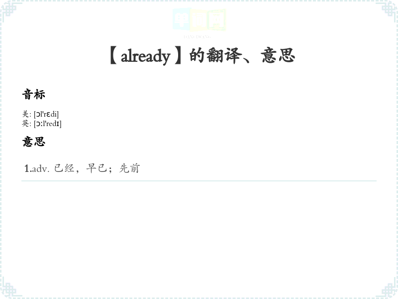 【already】是什么意思、字义解释