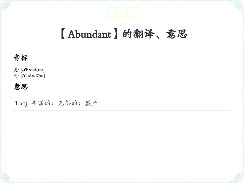 通过以上分析,可以更全面地理解并掌握“abundant”这个单词的含义与用法。
