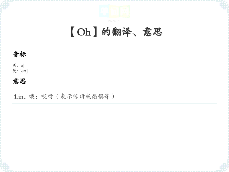 - 音标记忆法:将“oh”发音 /oʊ/ 进行重复练*,与声音的情感相结合,帮助记忆。