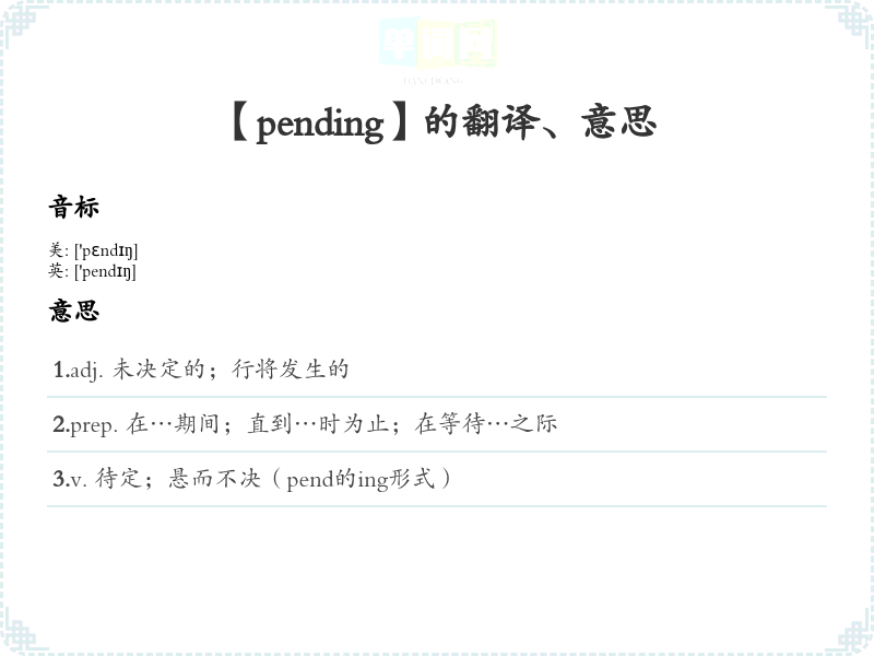通过这样的分析和学方法,学者可以更好地理解并运用单词“pending”。