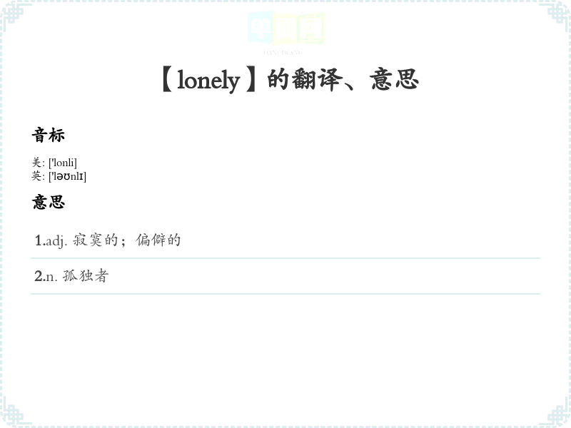 【lonely】是什么意思、字义解释