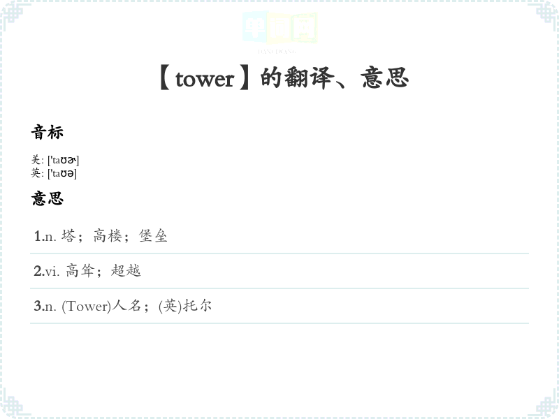 【tower】是什么意思、字义解释