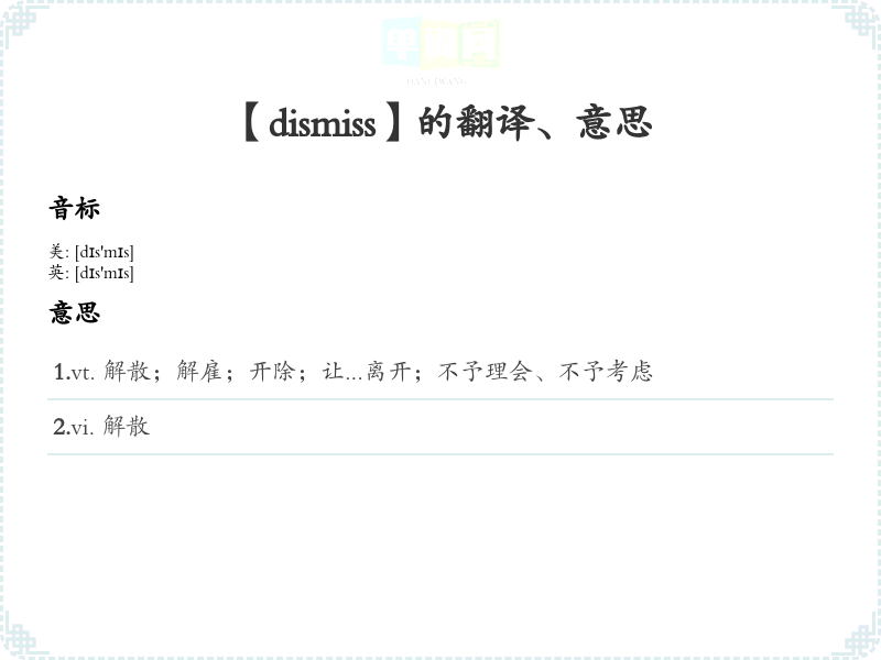 【dismiss】是什么意思、字义解释