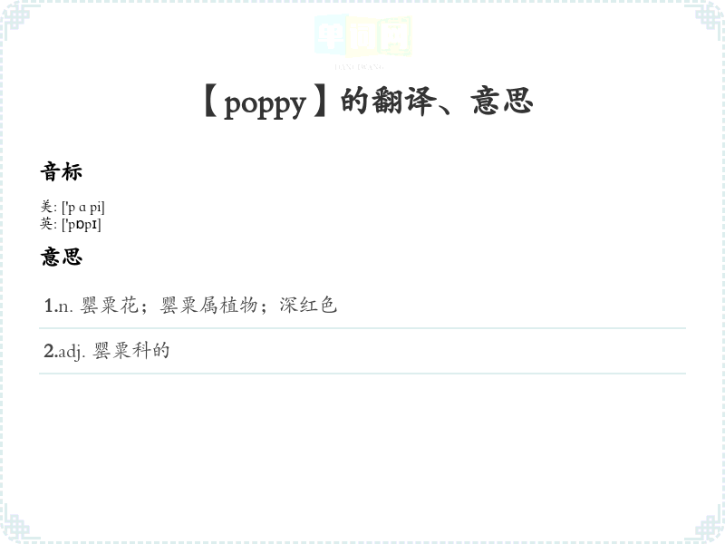 【poppy】是什么意思、字义解释
