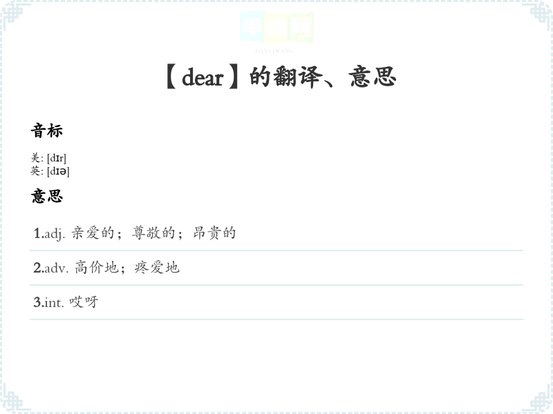 通过上述分析,希望能帮助您更好地理解和运用“dear”这个单词。
