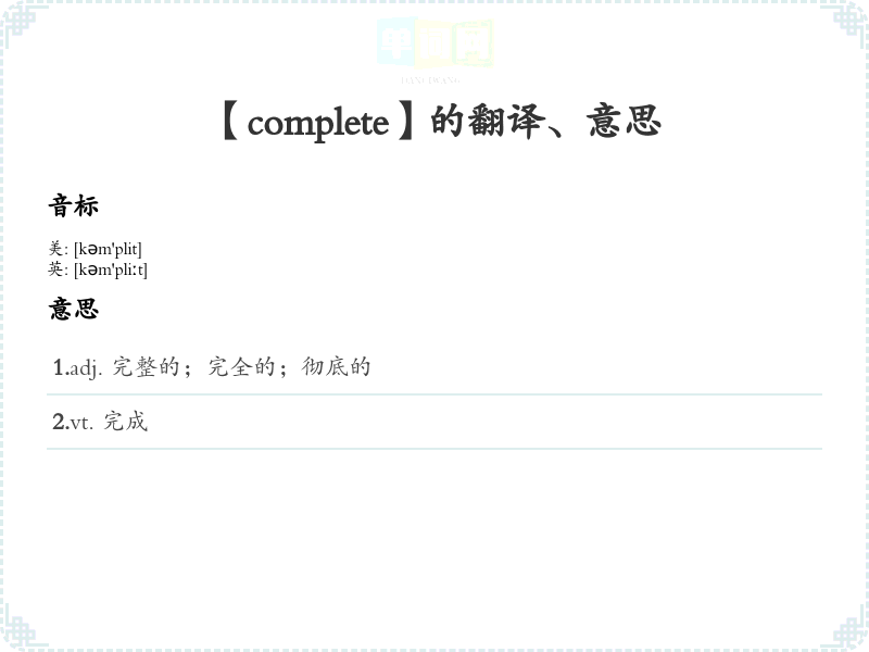 【complete】是什么意思、字义解释