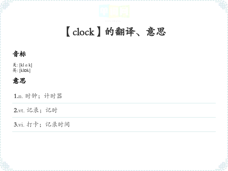 以上就是对“clock”的详细分析,希望能帮助你更好地理解和运用这个单词!